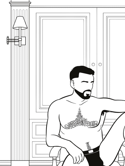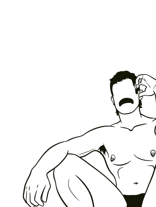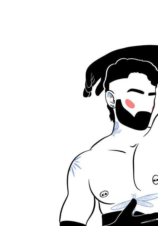 Bold, intimate digital artworks celebrating queer desire, masculinity, and erotic self-expression.
